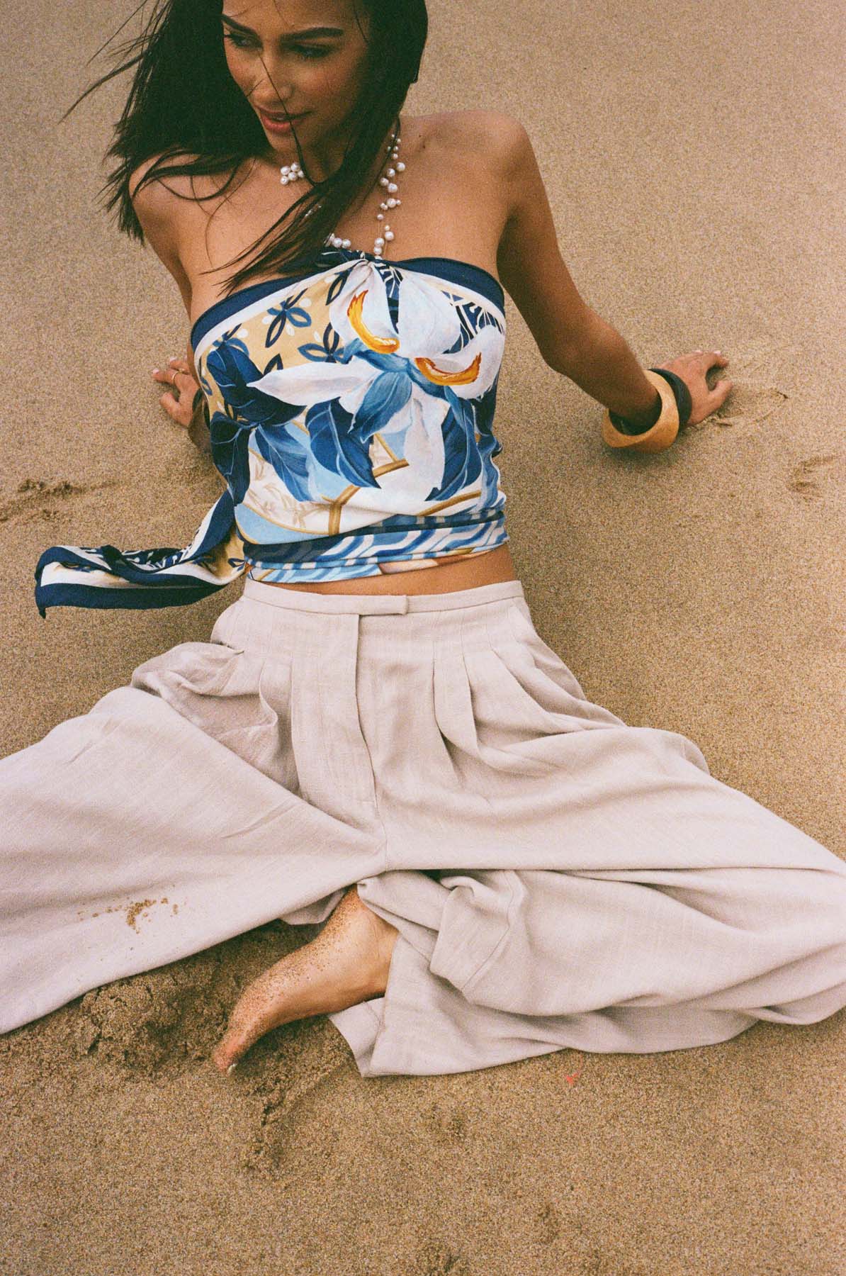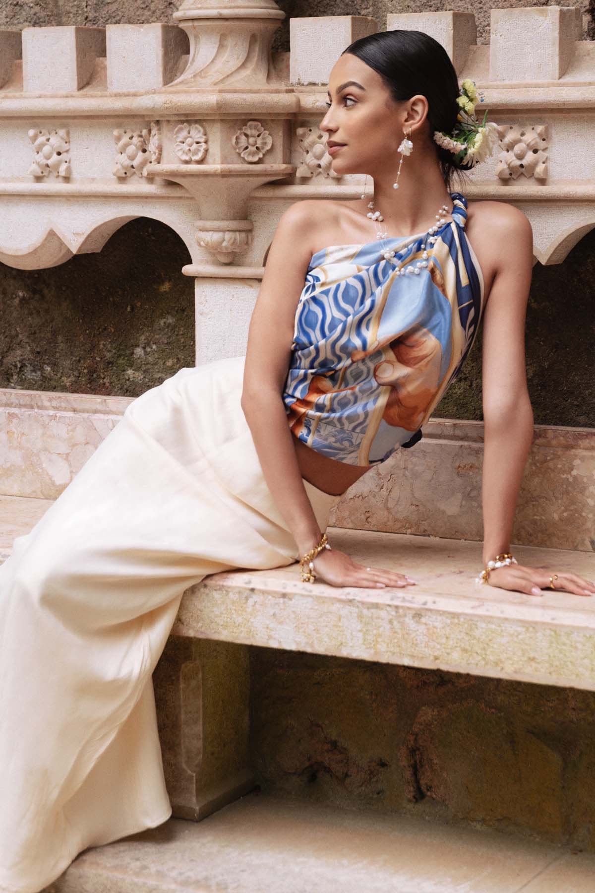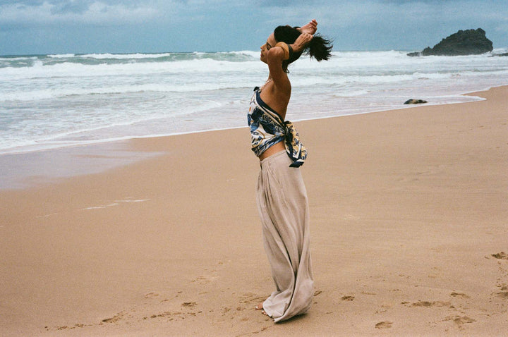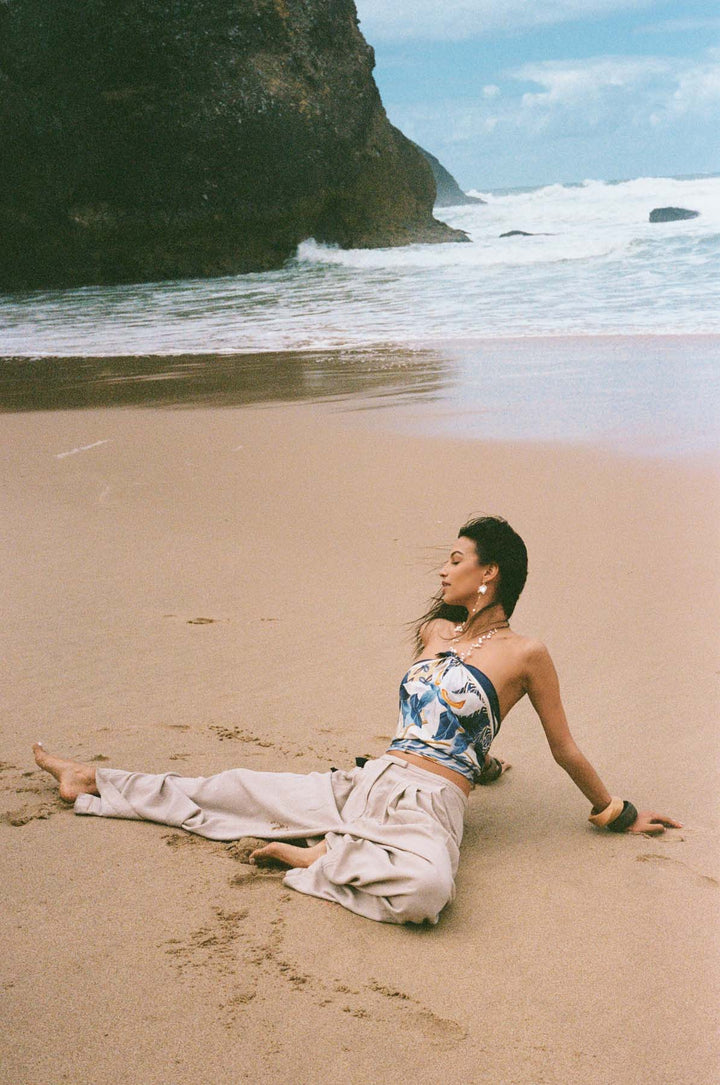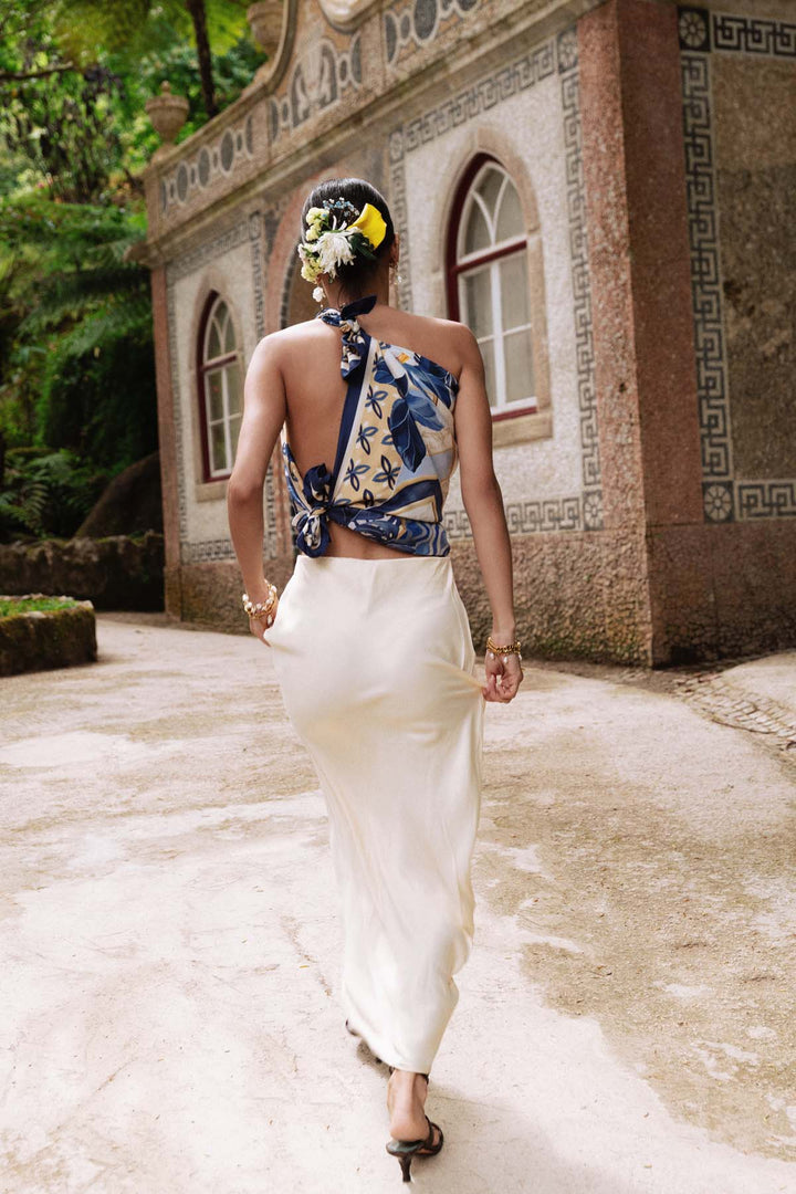 Designed for endless versatility, this piece transforms effortlessly. Drape it around your neck, style it in your hair, wear it as a top, or elevate any ensemble with a touch of refinement. A true sartorial chameleon, the Irele Scarf embodies the balance of confidence and grace.